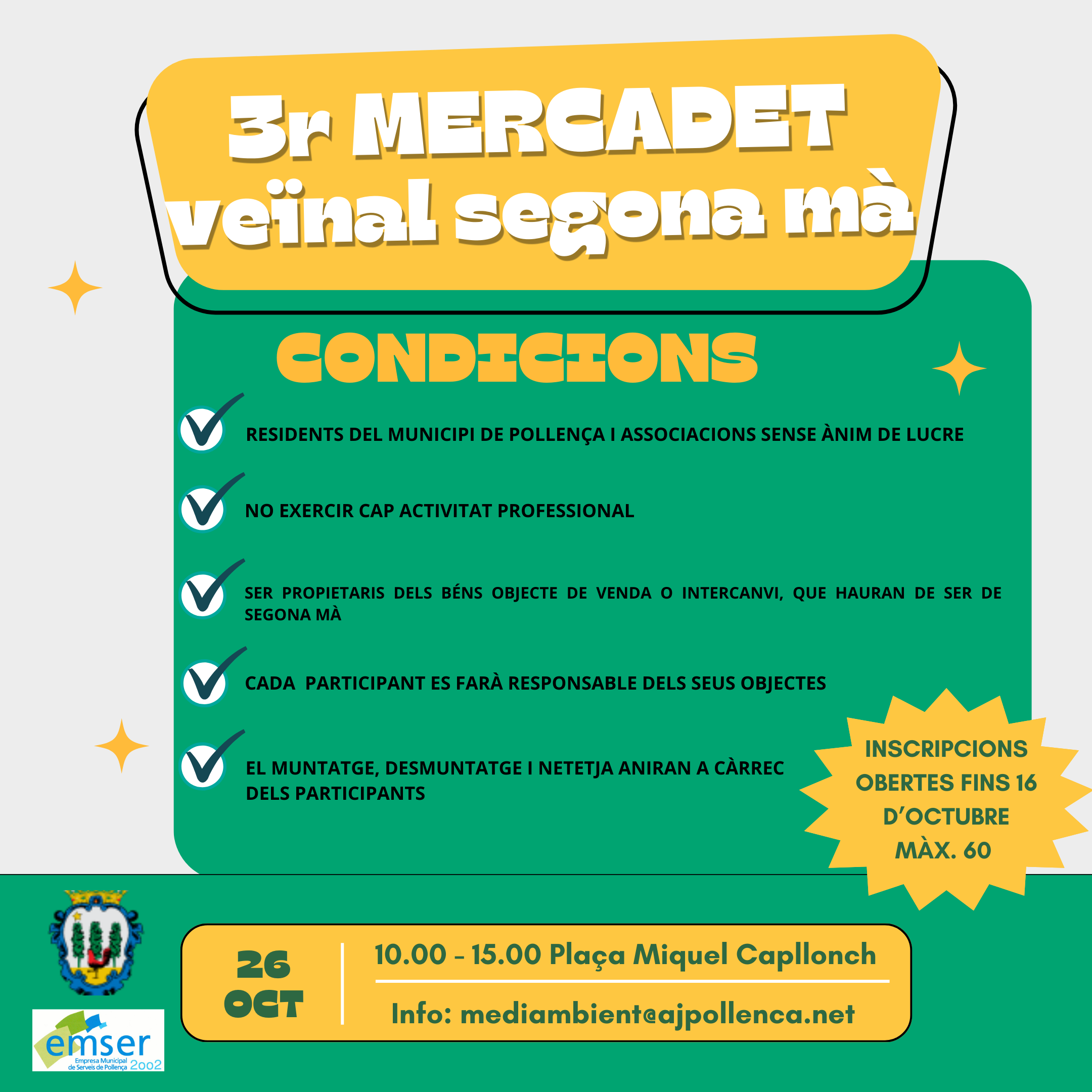 - Ser propietaris dels béns objecte de venda o intercanvi, que hauran de ser de segona mà..