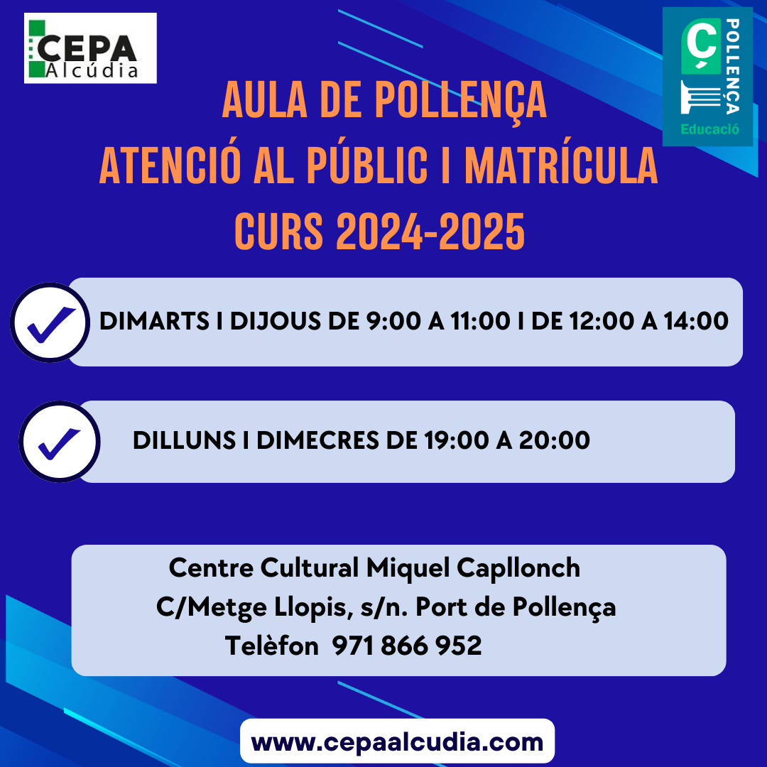 Oferta formativa i horaris curs 24-25 CEPA Alcúdia