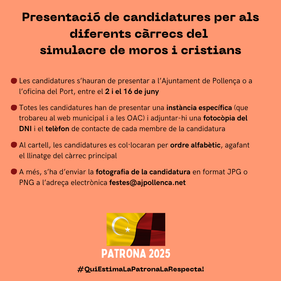🟨 Demà que al municipi commemoram el 31 de maig, data en què els corsaris turcs envaïren Pollença, aprofitam per compatir les primeres informacions sobre la Patrona 2025.